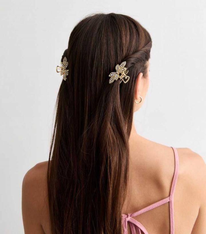 Hair Accessories | New Look Womens 2 Pack Gold Diamanté Leaf Mini Bulldog Hair Clips