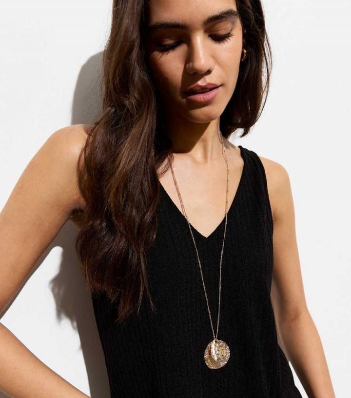 Jewellery | New Look Womens Gold Beaten Double Disc Long Pendant Necklace