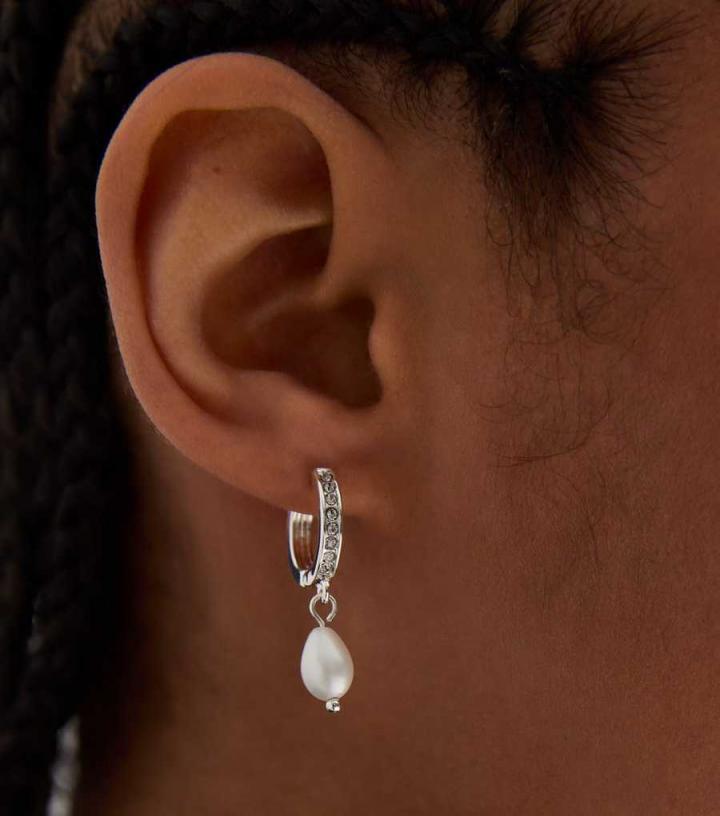 Jewellery | New Look Womens Real Silver Plate Faux Pearl Diamanté Hoop Earrings