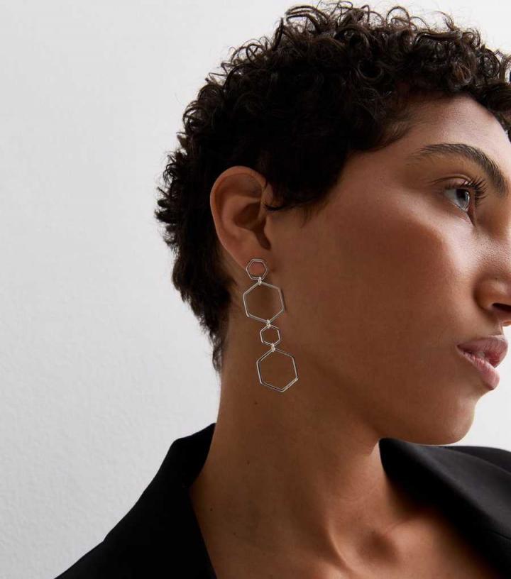 Jewellery | New Look Womens Silver Cut Out Hexagon Drop Earrings