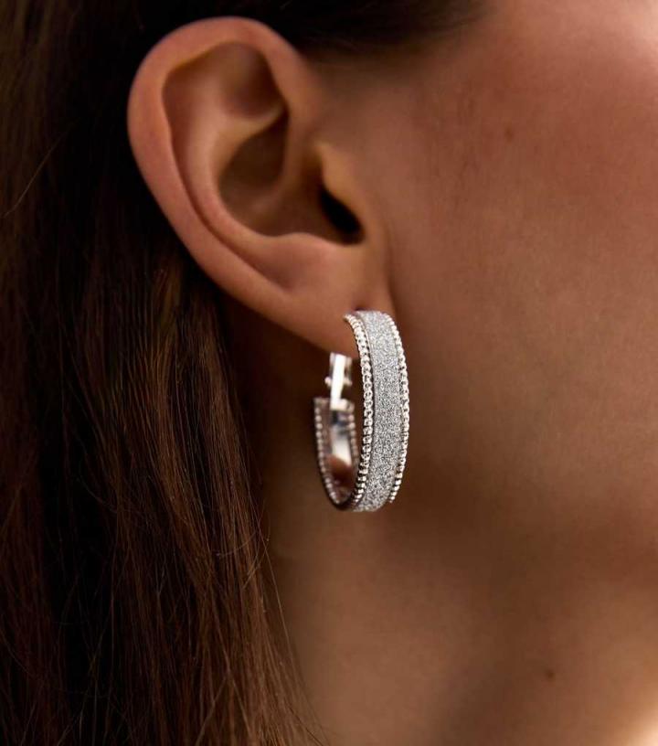 Jewellery | New Look Womens Silver Glitter Wide Hoop Earrings