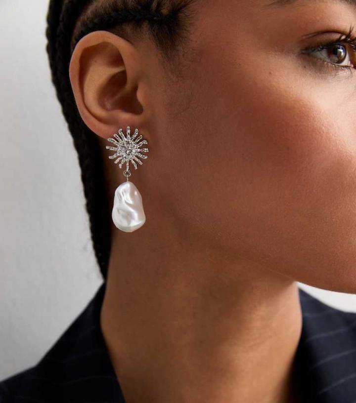 Jewellery | New Look Womens Silver Sun Faux Pearl Drop Earrings