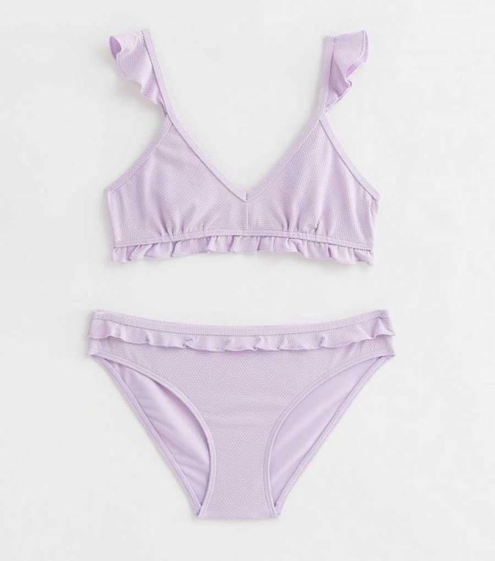 Swimwear | New Look Girls Lilac Textured Frill Triangle Bikini Set