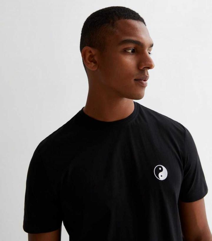 T-Shirt & Polos | New Look Mens Black Cotton Embroidered Yin Yang Logo T-Shirt