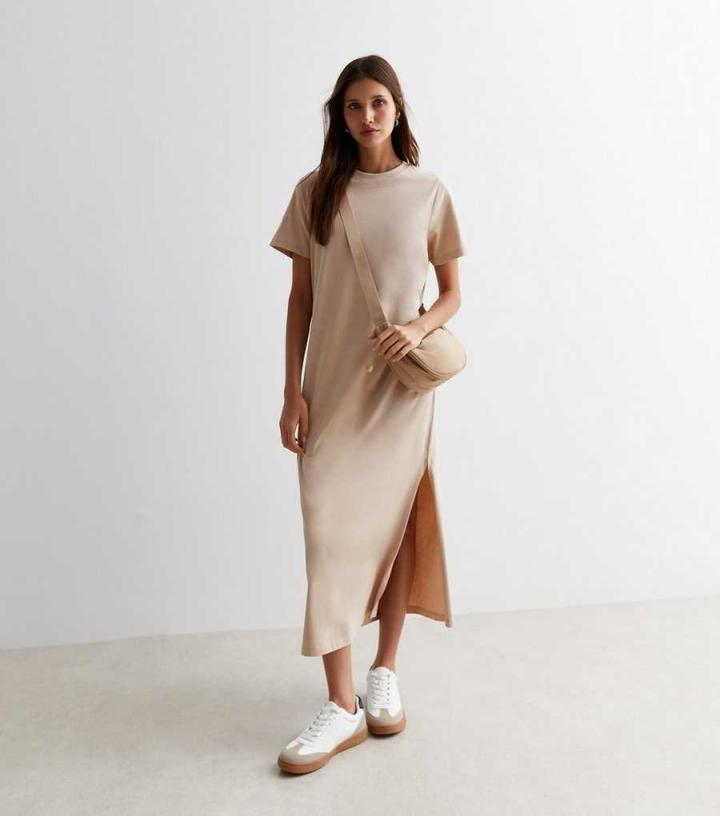Dresses | New Look Womens Stone Cotton Split Hem Midaxi T-Shirt Dress