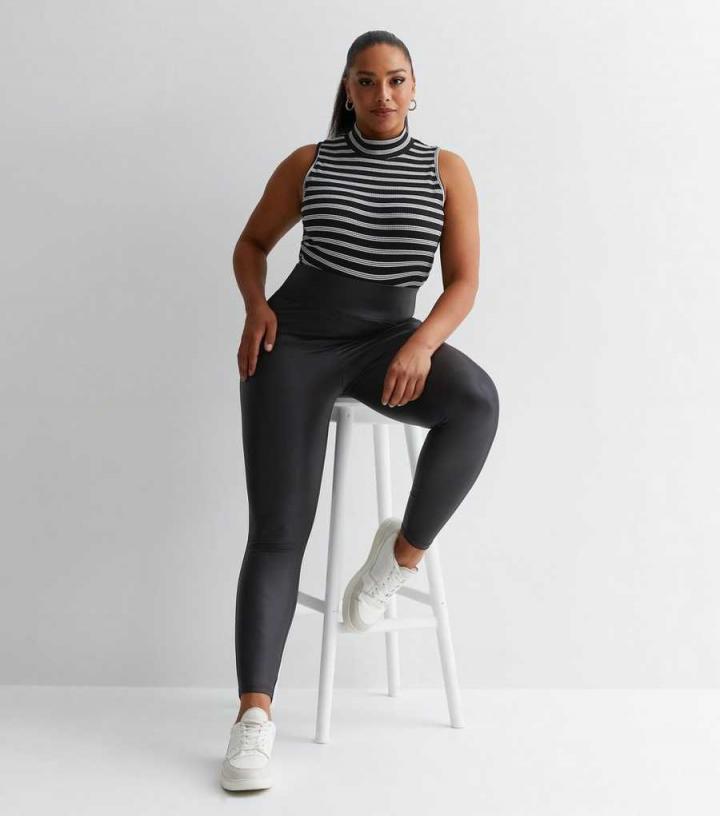 Leggings | New Look Womens Curves Black Leather-Look High Waist Leggings