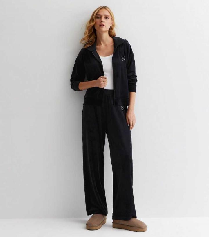 Nightwear & Loungewear | New Look Womens Black Velour Wide Leg Trousers