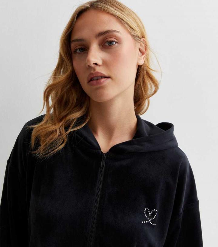 Nightwear & Loungewear | New Look Womens Black Velour Zip Up Lounge Hoodie