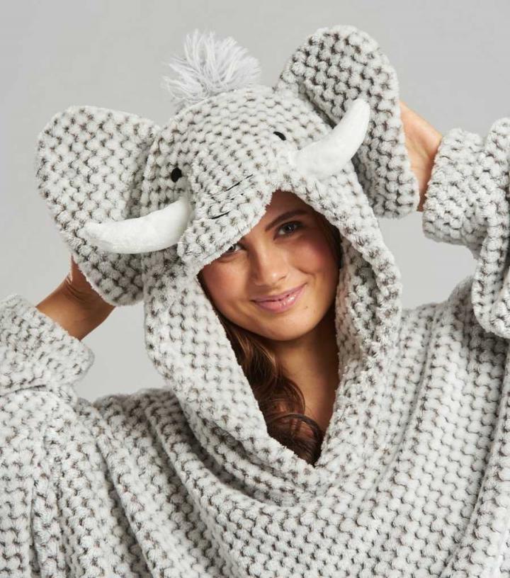 Nightwear | New Look Womens Loungeable Pale Grey Elephant Waffle Fleece Blanket Hoodie