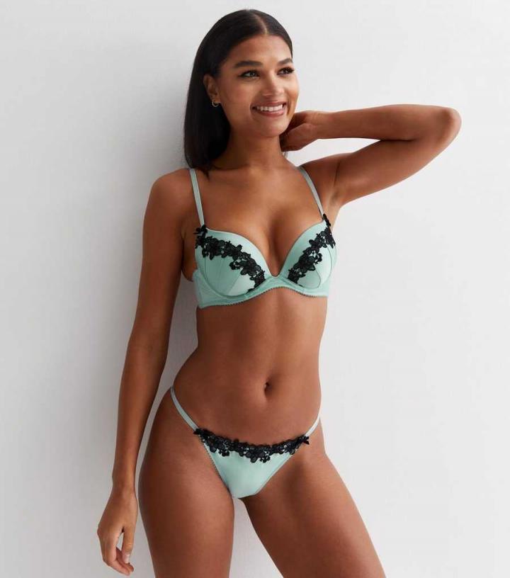 Lingerie | New Look Womens Mint Green Satin Lace Trim Push Up Bra