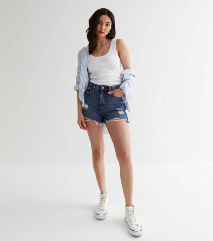 Jeans & Denim | New Look Womens Petite Blue Denim Extreme Ripped Mom Shorts