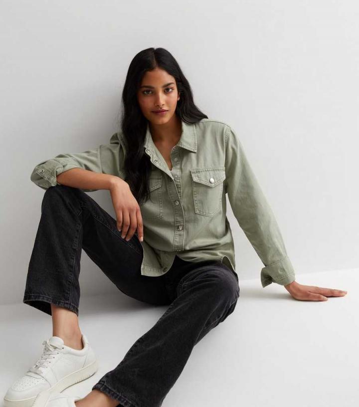 Tops | New Look Womens Khaki Cotton Oversized Shirt