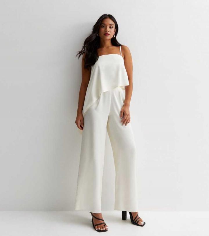 Trousers, Skirts & Shorts | New Look Womens Petite Cream Satin Wide Leg Tailored Trousers