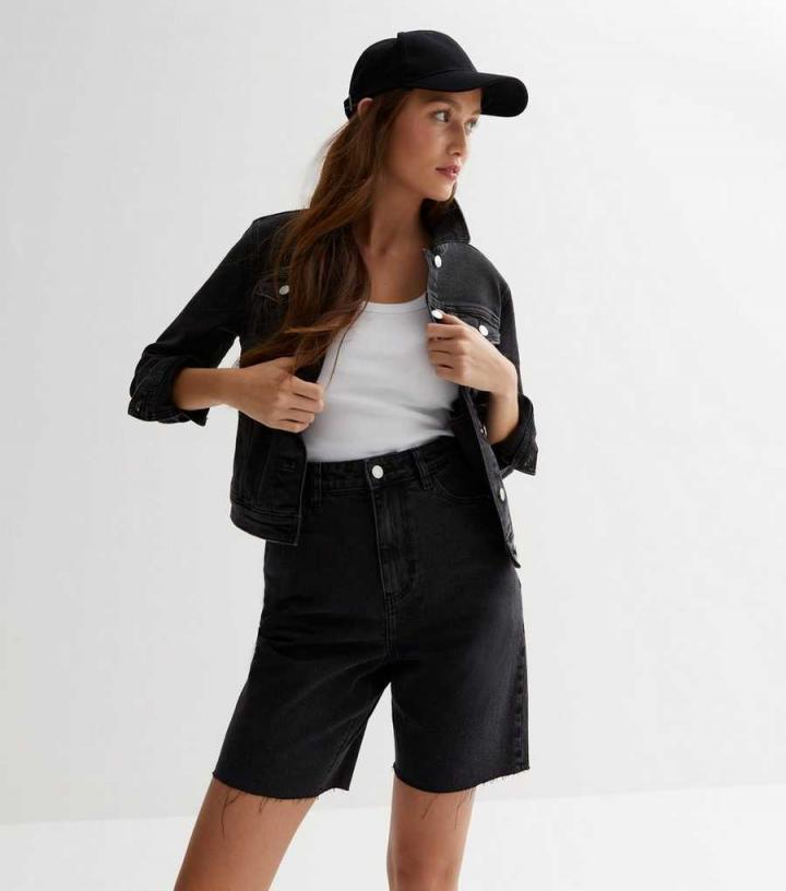 Jeans & Denim | New Look Womens Black Denim Raw Hem High Waist Bermuda Shorts