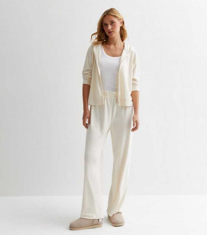 Nightwear & Loungewear | New Look Womens Off White Velour Wide Leg Trousers
