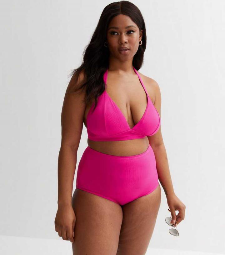 Swimwear & Beachwear | New Look Womens Curves Pink Ribbed High Waist Bikini Bottoms