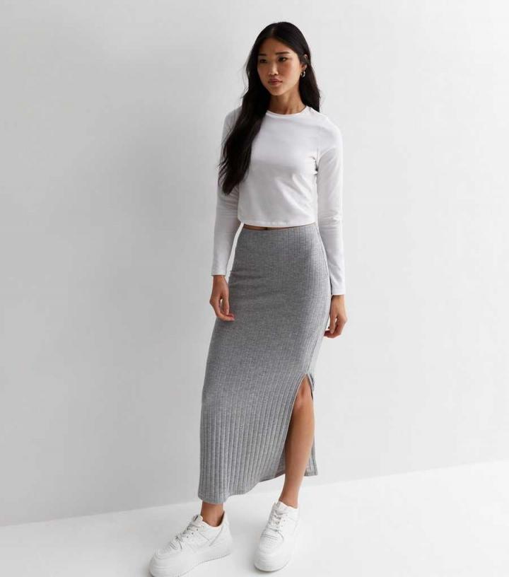 Skirts | New Look Womens Pale Grey Ribbed Jersey High Waist Midi Skirt