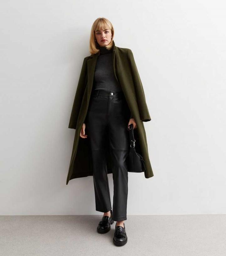 Trousers | New Look Womens Black Leather-Look Straight Leg Trousers