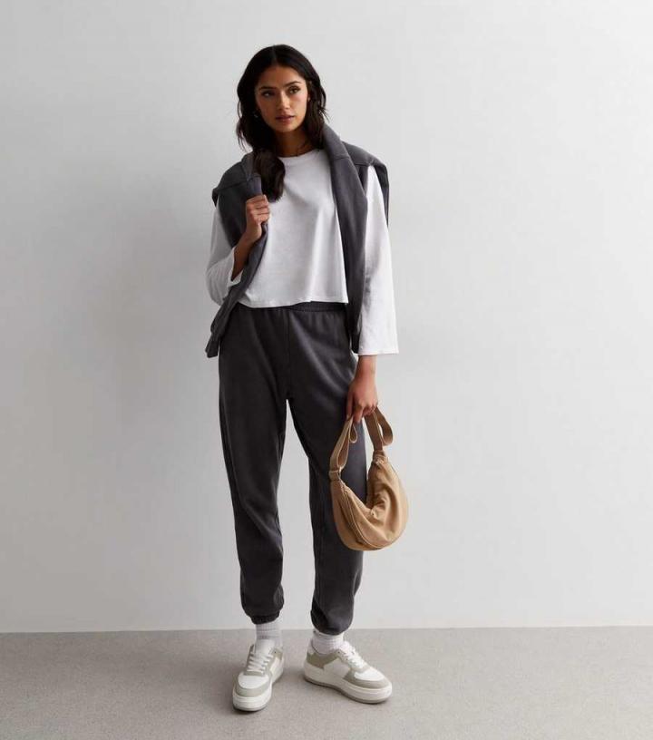 Trousers | New Look Womens Dark Grey Acid Wash Cuffed Joggers