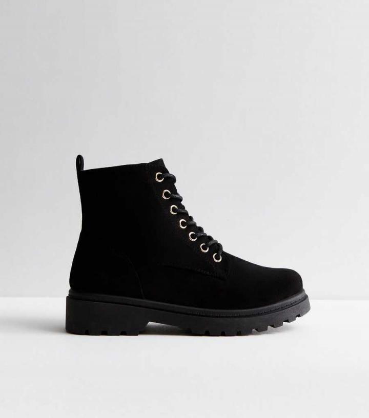 Boots | New Look Womens Black Suedette Lace Up Biker Boots