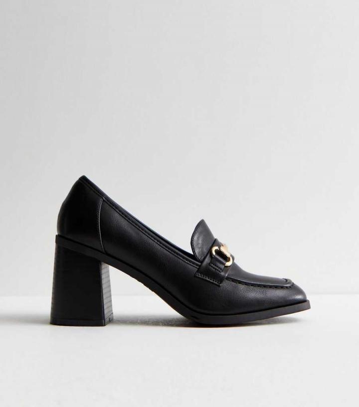 Heels | New Look Womens Black Snaffle Trim Block Heel Loafers