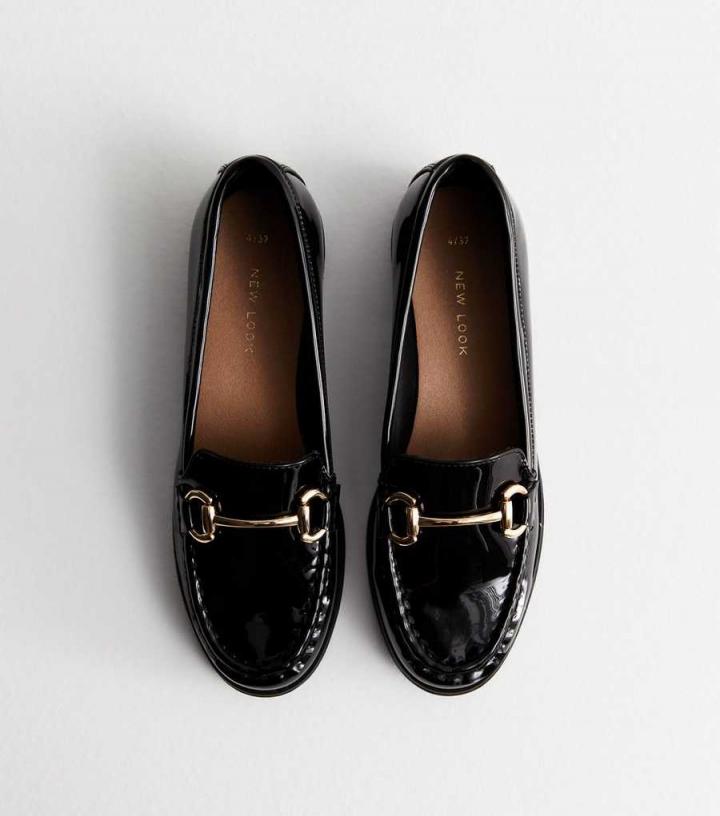 Loafers | New Look Womens Black Patent Snaffle Trim Loafers