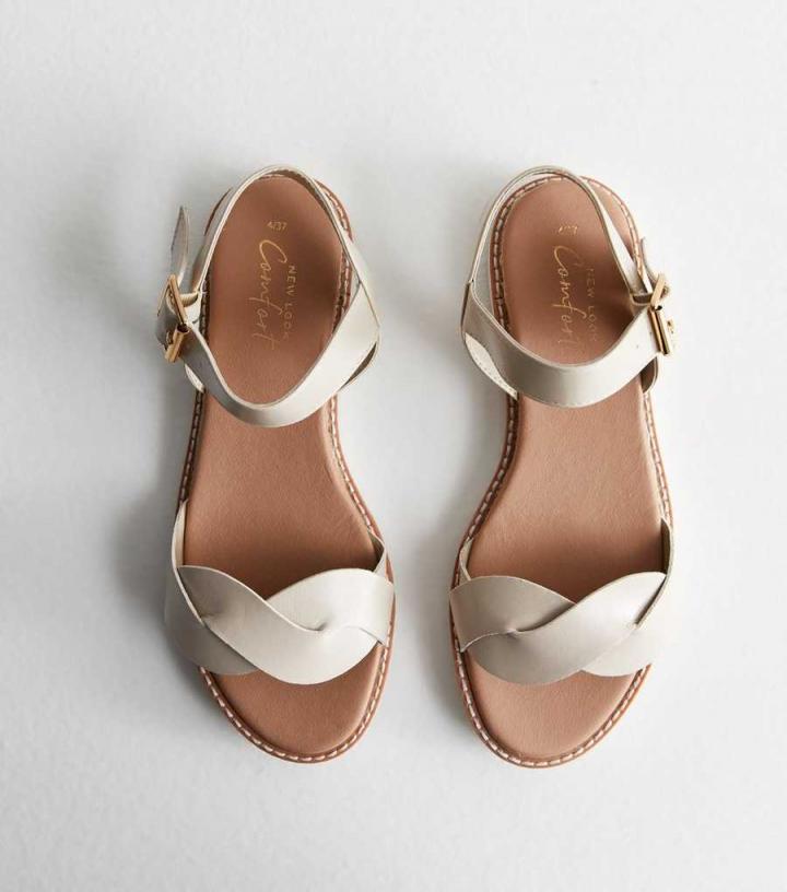 Sandals | New Look Womens Wide Fit Off White Leather-Look 2 Part Footbed Sandals