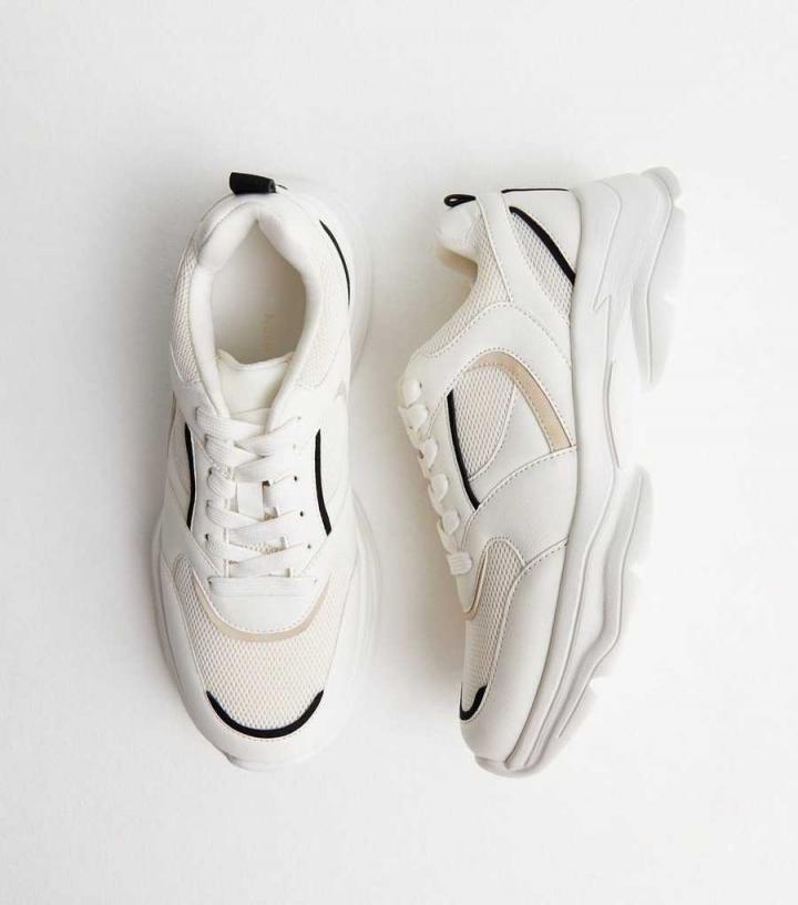 Flats | New Look Womens White Leather-Look Contrast Chunky Trainers