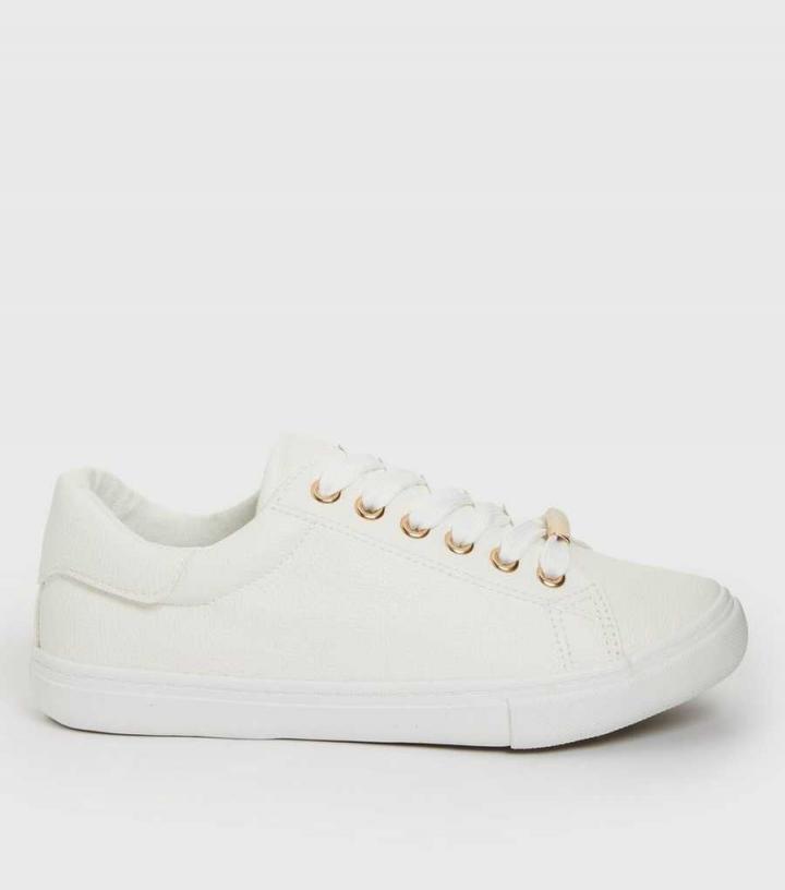 Shoes & Boots | New Look Womens|Girls White Canvas Lace Up Trainers