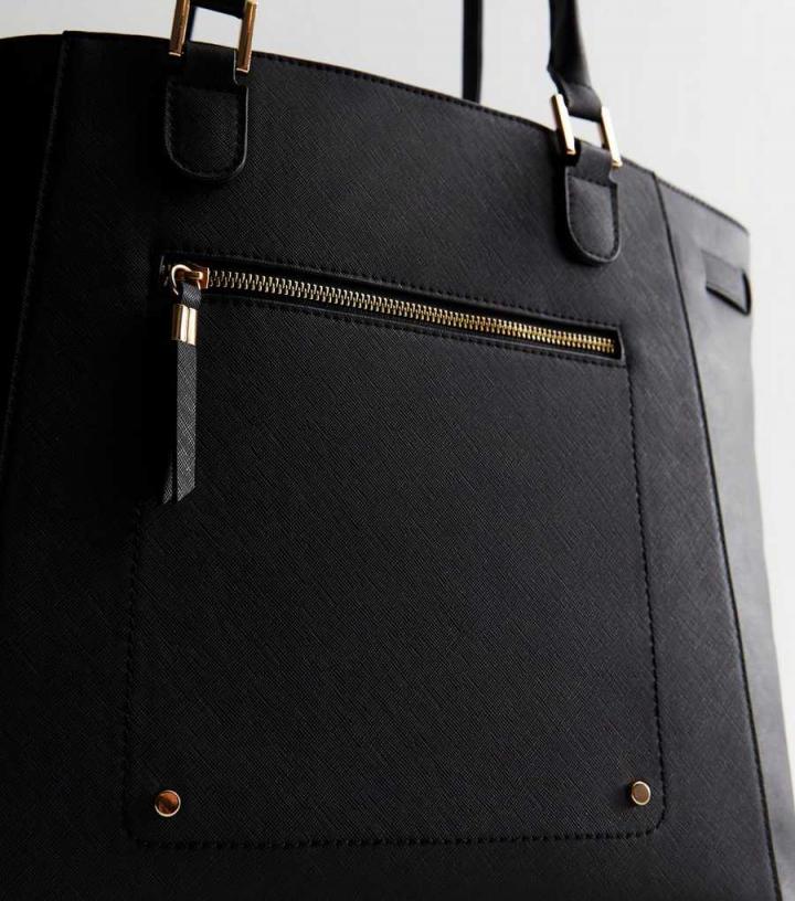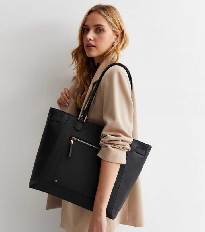 Need to carry your laptop? Whether you’re heading to school or work, this black tote bag is roomy enough for all your daily essentials.