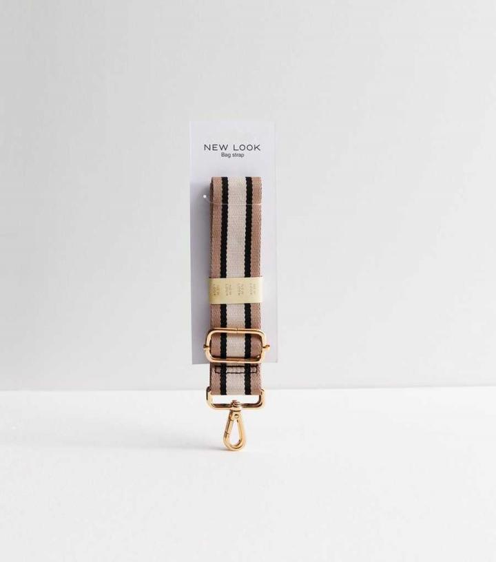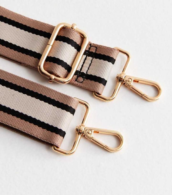 Switch up your accessories with this neutral stripe bag strap. – Black/brown/cream- Stripe pattern- Gold-tone hardware- Woven finish- Adjustable- Clip fastening Product Code: 891136799 Care Guide:100% Polyester. …