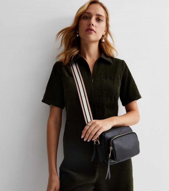 Switch up your accessories with this neutral stripe bag strap.