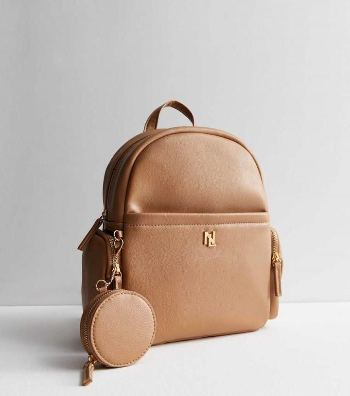 Perfect for storing your essentials in style, this camel backpack boasts a classic leather-look finish and cute matching coin purse.