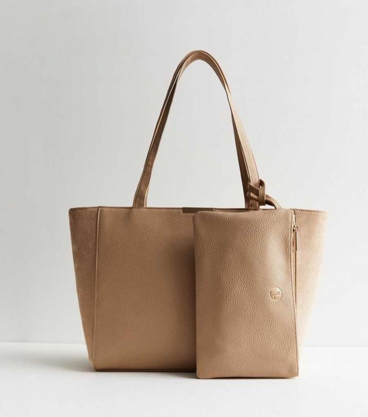 Designed with a leather-look finish and suedette panels, this camel tote bag is a sleek addition to your accessories collection. The matching purse fits perfectly inside, along with all of your essentials.