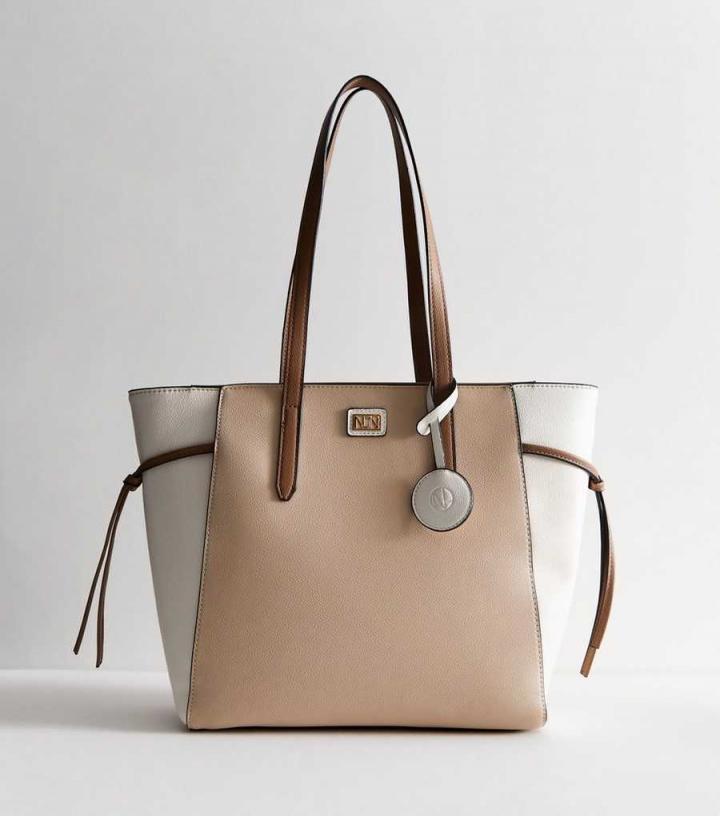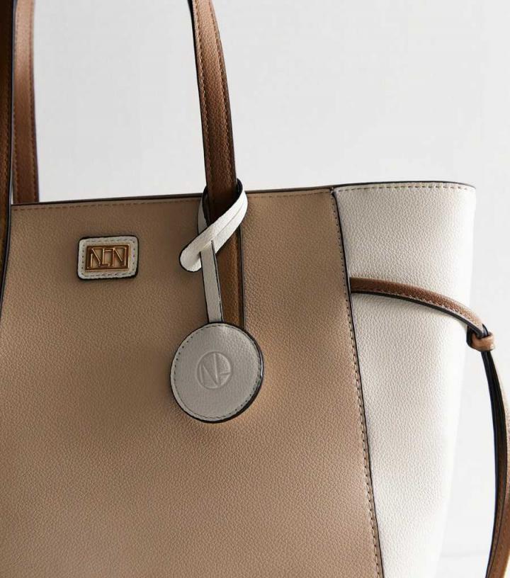 – Light brown/off white- Grained leather-look – Gold tone NL logo plaque – Panelled colour block design- Side knot detail- Top zip fastening- Internal zip pocket- Two long shoulder straps