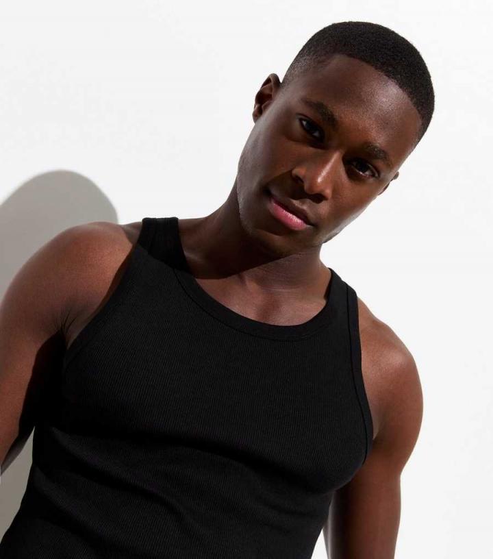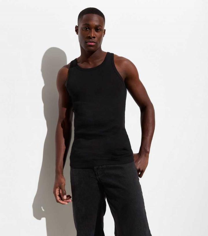 Mens Black Ribbed Jersey Muscle Fit Vest New Look…