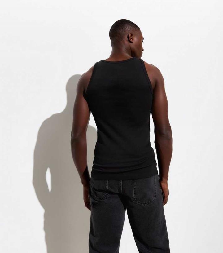 Mens Black Ribbed Jersey Muscle Fit Vest New Look