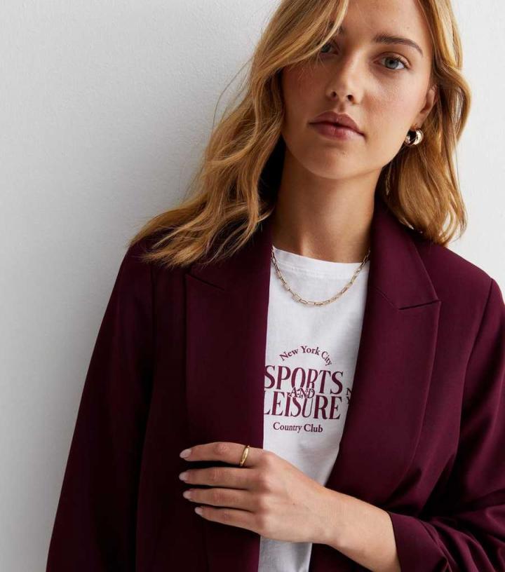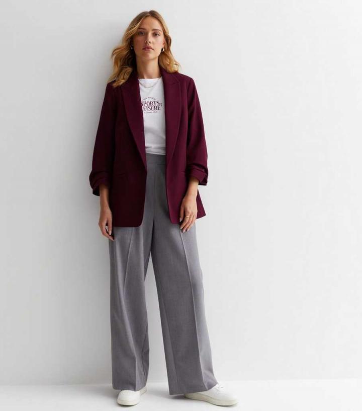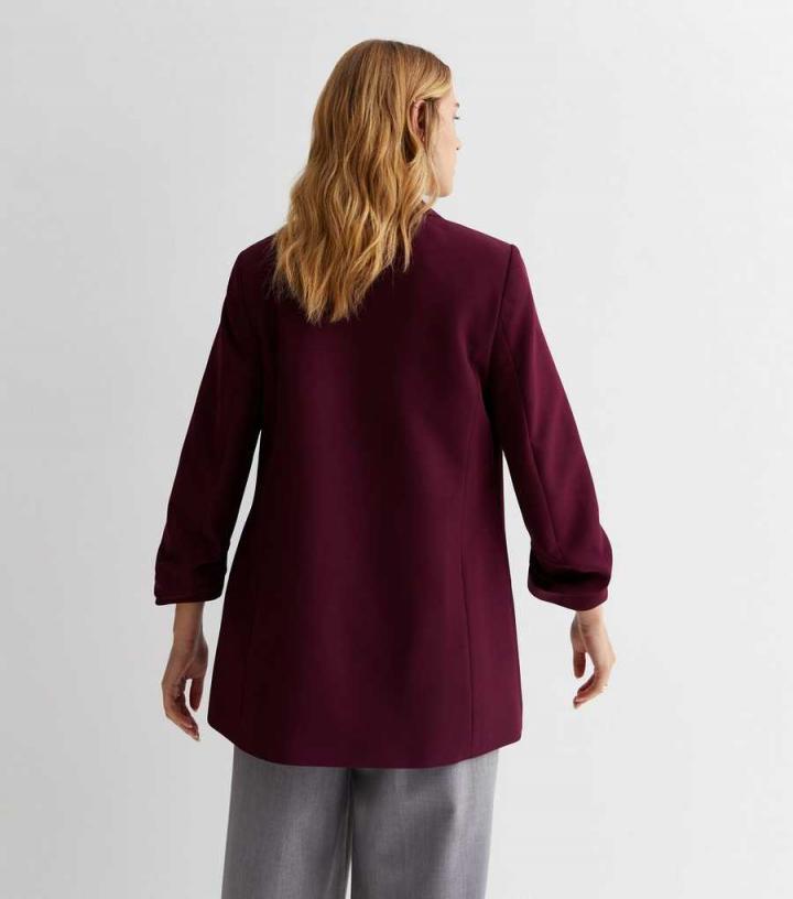 Blazers | New Look Womens Burgundy Ruched Sleeve Oversized Blazer