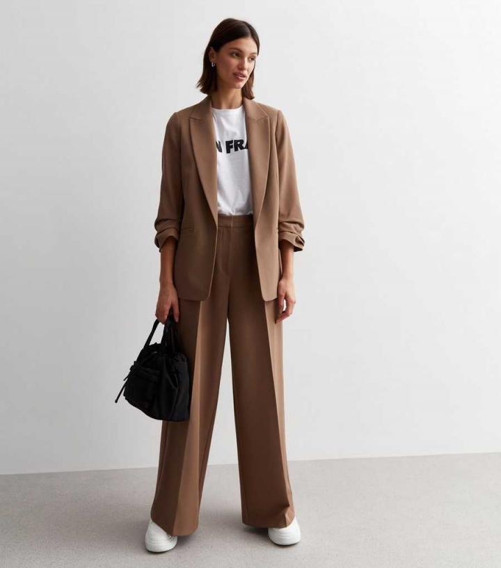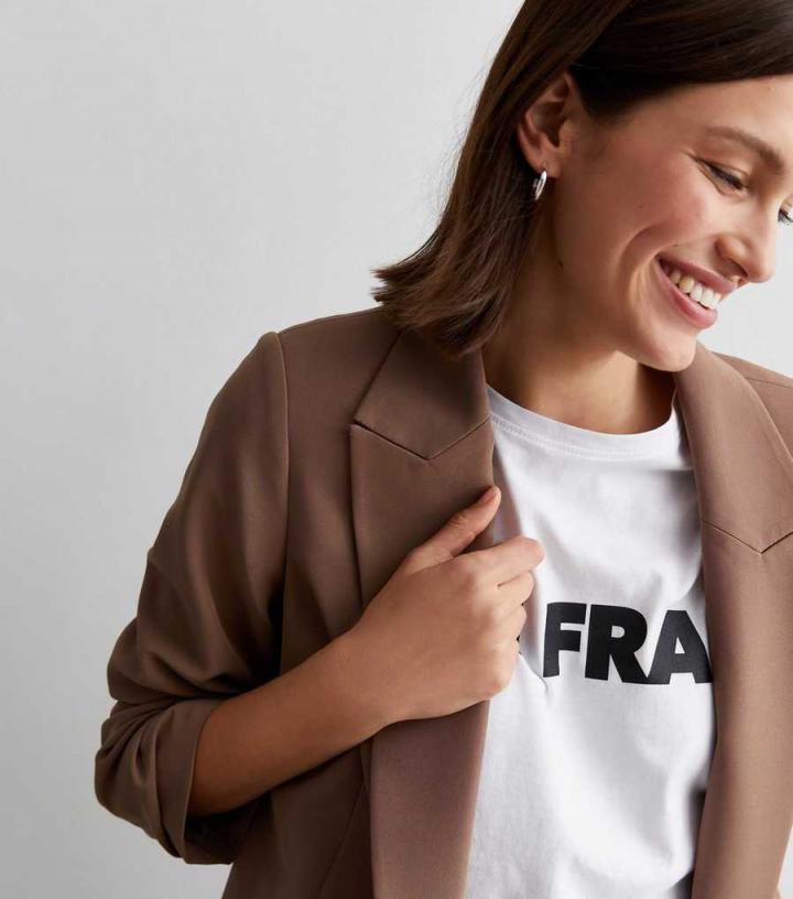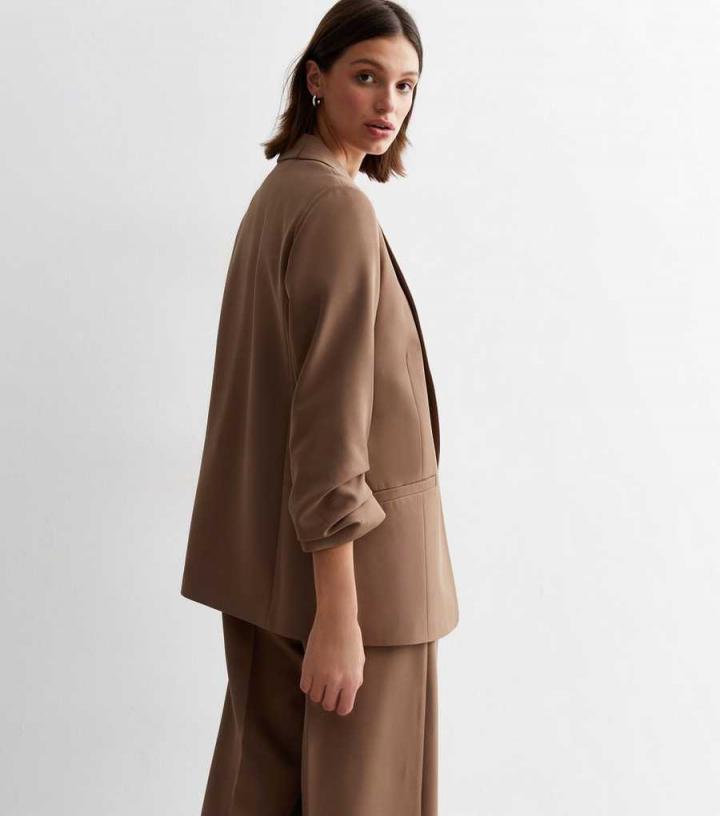 An office-to-out staple gets a cool twist with this mink ruched sleeve blazer. Its classic colourway is perfect for all occasions, styling breezily with a graphic tee and trousers or a mini skirt and heels.- Revere collared neckline- 3/4 ruched sleeves- Side pocket detail- Lightweight woven fabric- Regular fit- Model is 5’9.5"/176.5cm and wears UK 10/EU 38/US 6