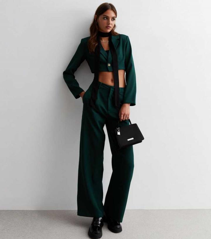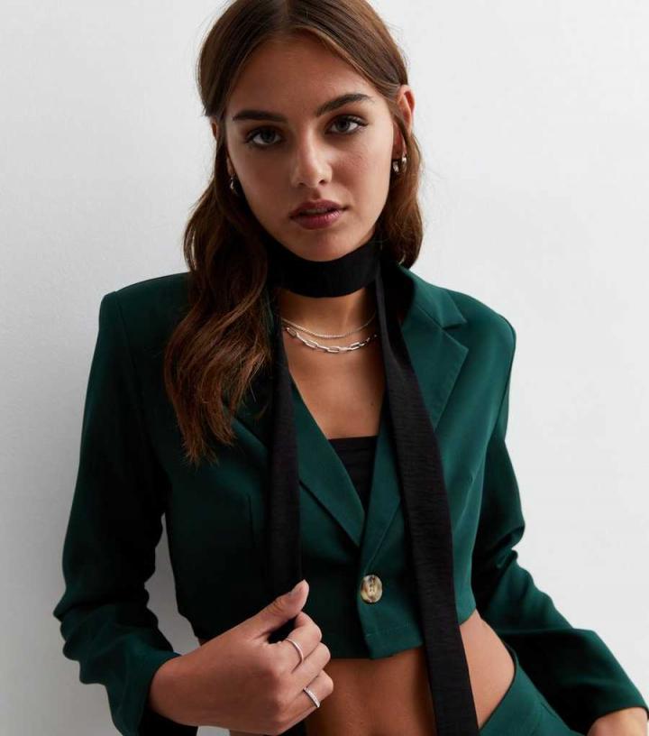 Pink Vanilla. Worn separately or with the matching trousers, this green blazer is equal parts smart and stylish. Cut to a cropped length, it pairs perfectly with high waist styles.
