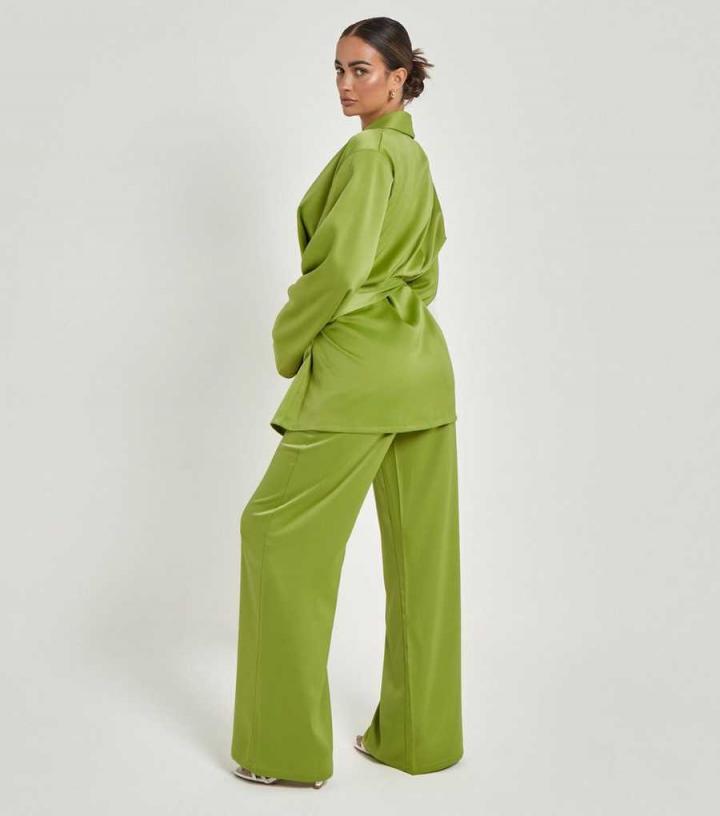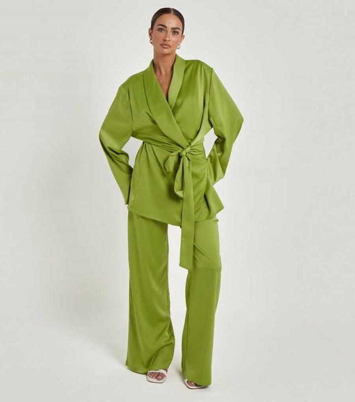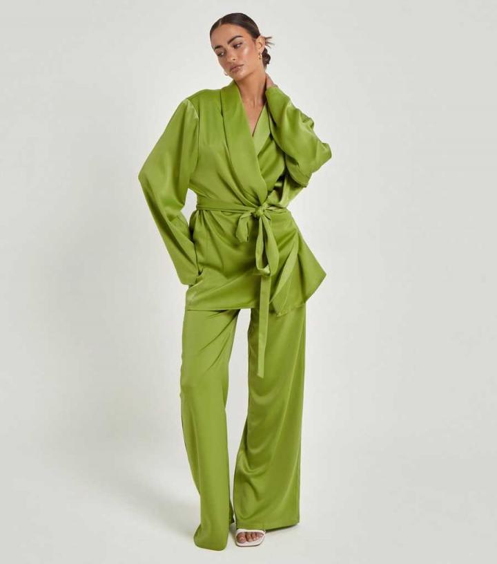 Urban Bliss. Going out-out? Opt for this green wrap blazer. Crafted from a shimmering satin fabric, it looks great with the matching wide leg trousers for an effortlessly chic look.