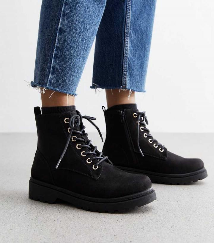 Boots | New Look Womens Black Suedette Lace Up Biker Boots