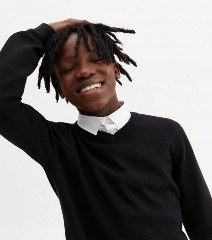 Boys 2 Pack Black V Neck School Jumpers New Look…