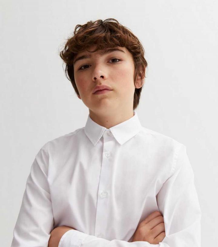 Boys 2 Pack White Long Sleeve Easy Care School Shirts New Look…