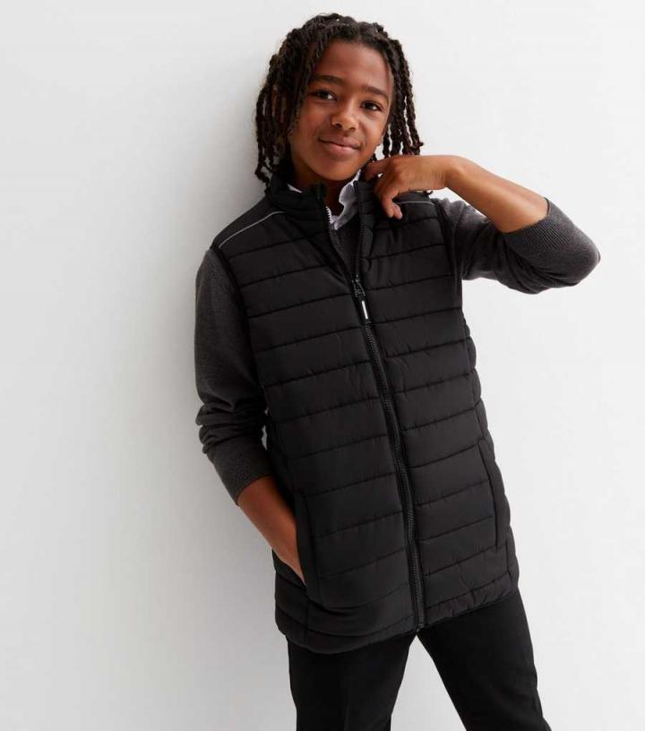 Clothing | New Look Boys Black Quilted High Neck Gilet