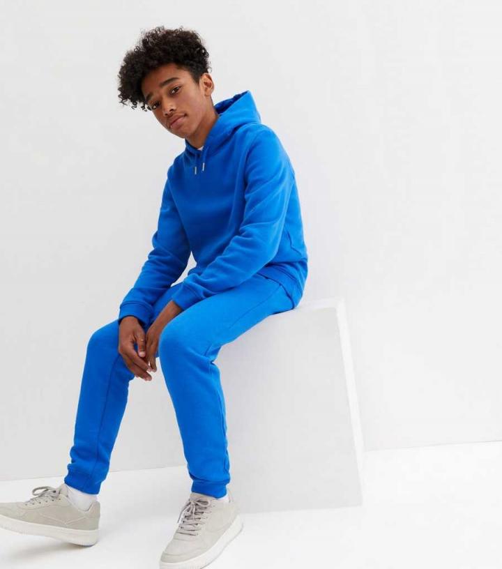 Boys Bright Blue Jersey Joggers New Look…
