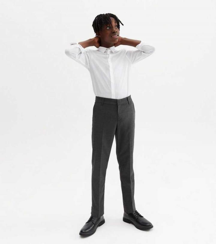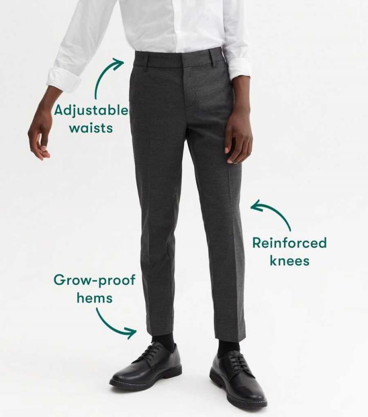 Boys Dark Grey Adjustable Waist Slim Leg School Trousers New Look…