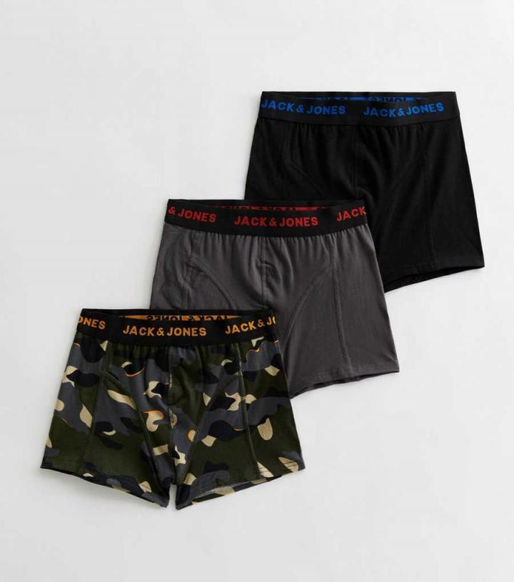 Boys Jack & Jones Junior 3 Pack Khaki Camo Boxers New Look…