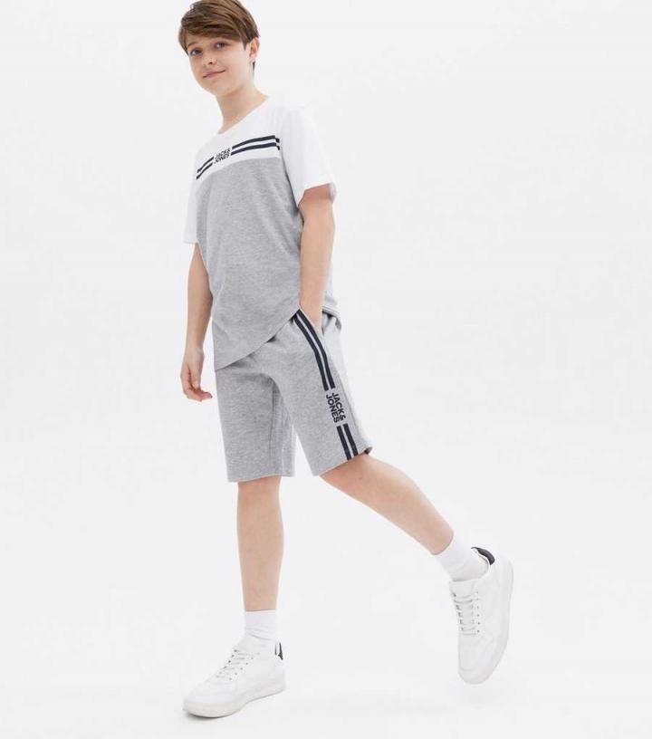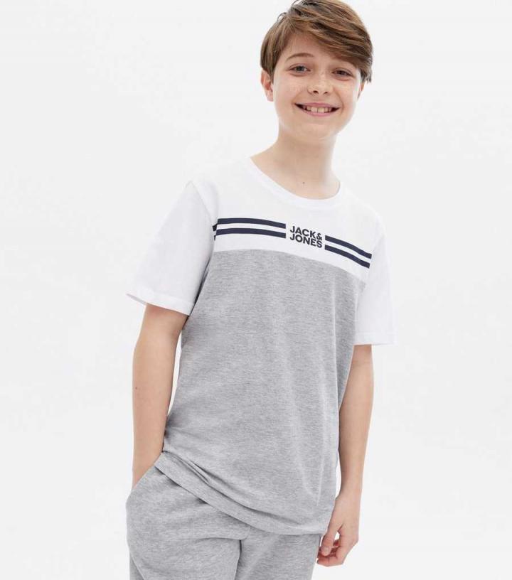 Boys Jack & Jones Junior Pale Grey Stripe Logo T-Shirt New Look…