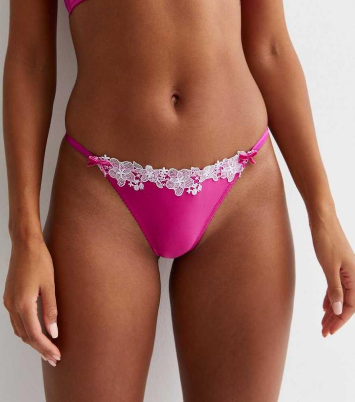 Co-ords | New Look Womens Bright Pink Satin Embroidered Trim Thong